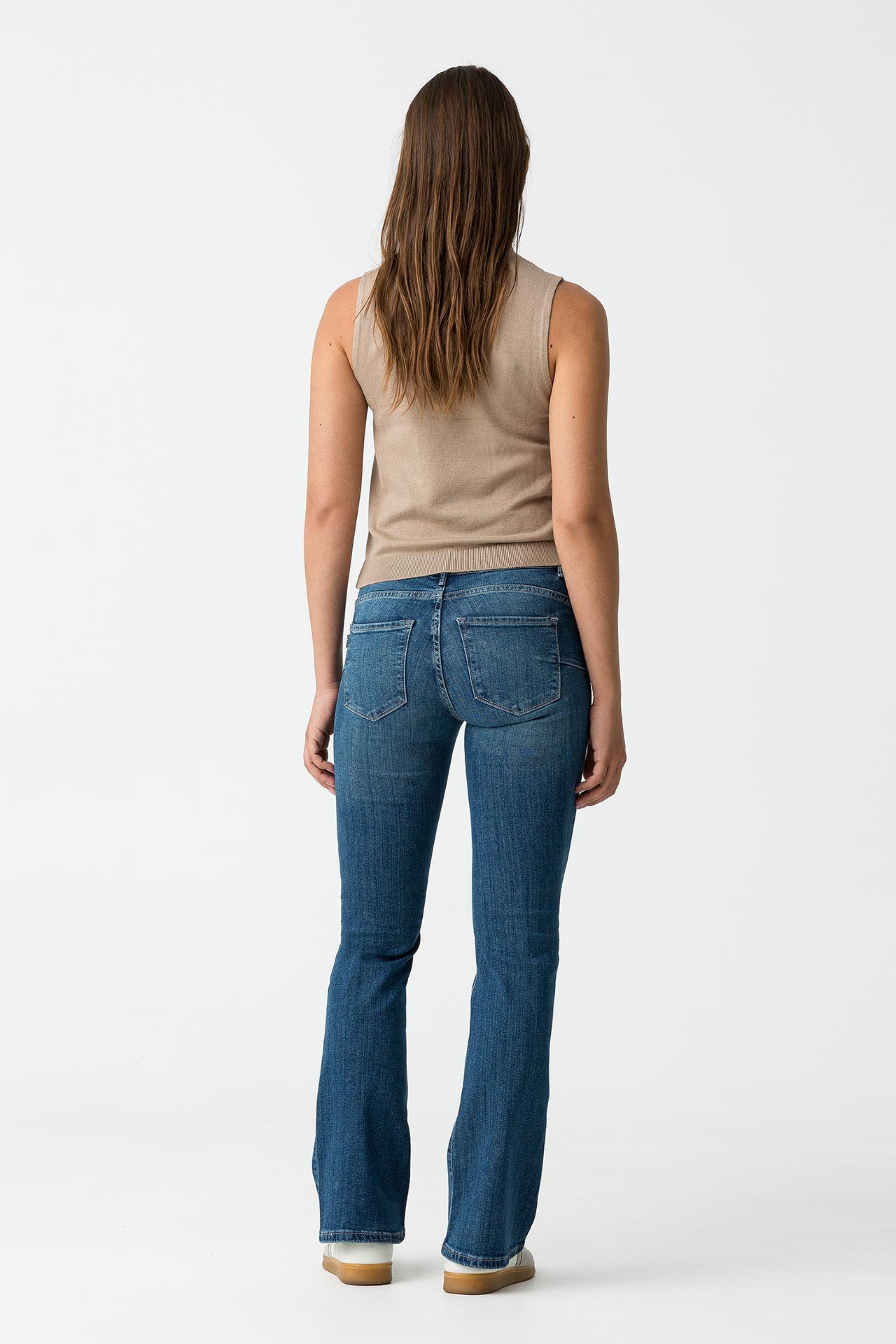 Vaqueros acampanados de tiro medio con cinco bolsillos.