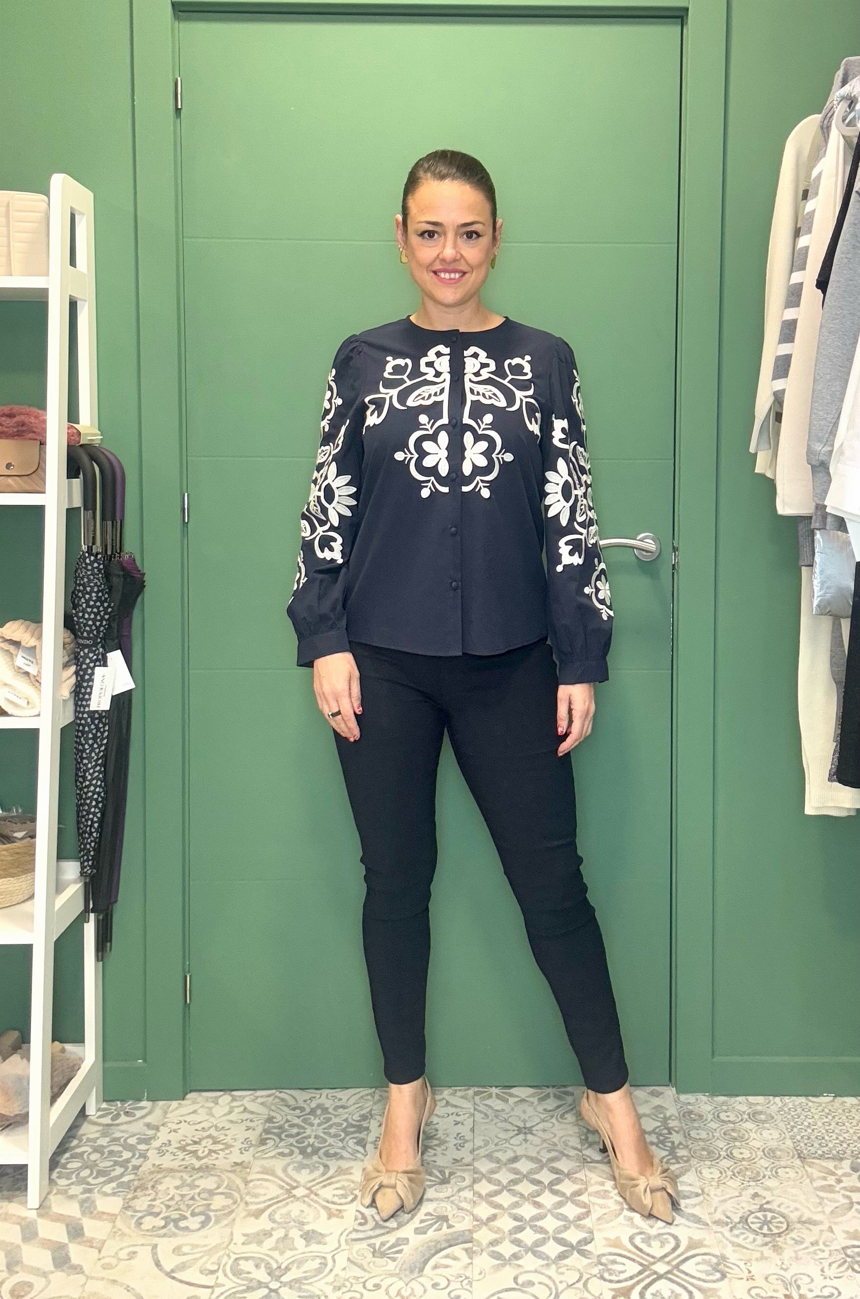 Adorno de piedras brillantes en la parte del bolsillo trasero.