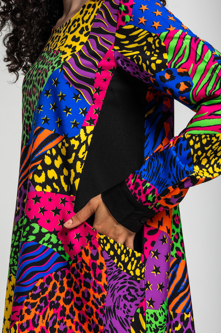 VESTIDO CORTE A BOLSILLOS DE ESTAMPADO VARIADO ANIMAL PRINT LOLINA